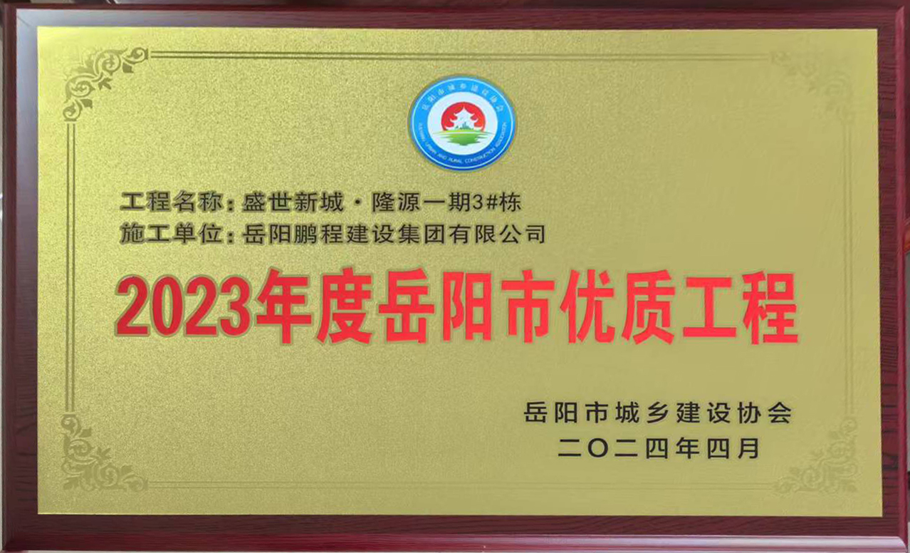 2023年度岳阳市优质工程--盛世新城隆源一期3#栋